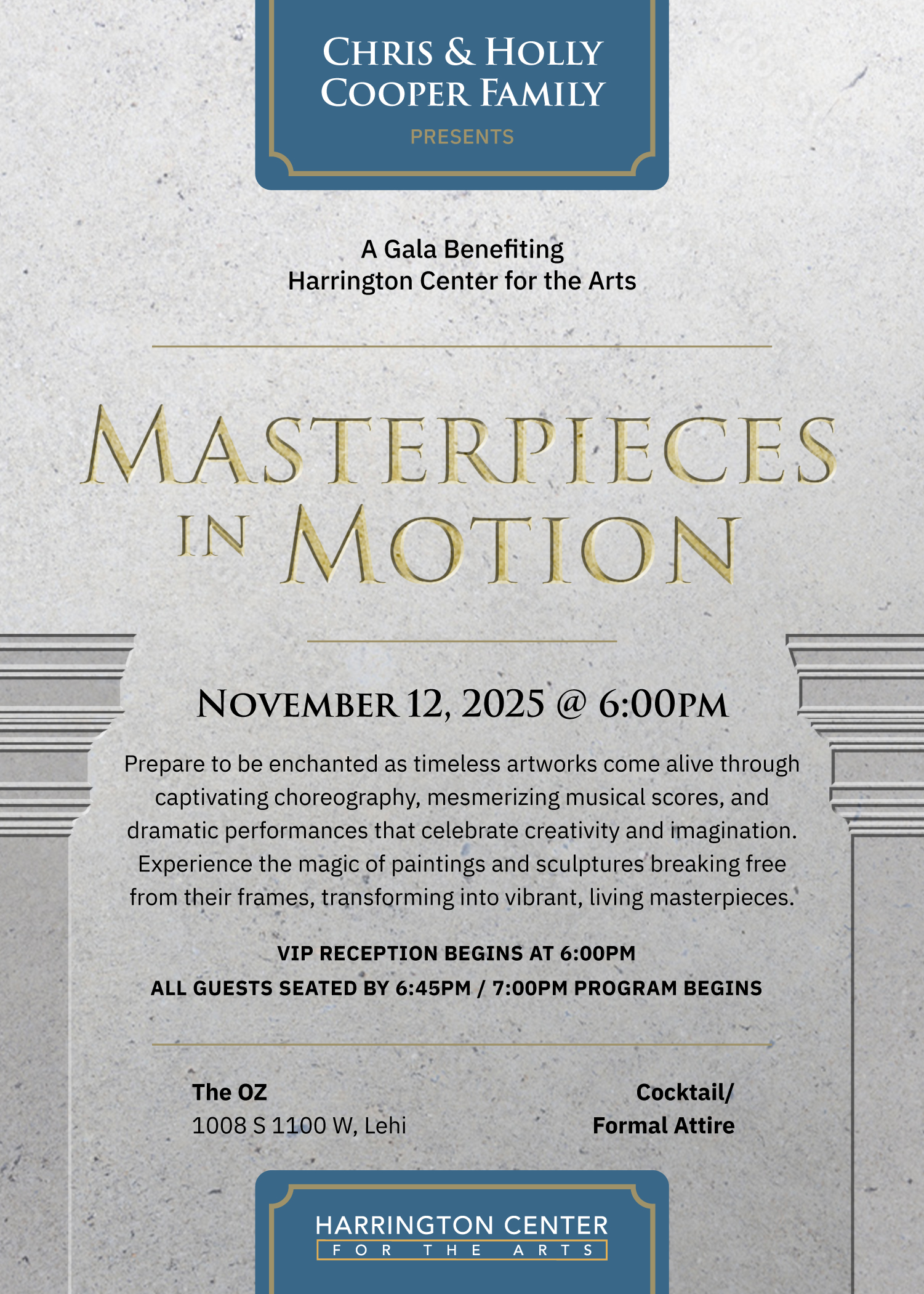We're excited to invite you to an evening of living art benefiting the Harrington Center for the Arts!